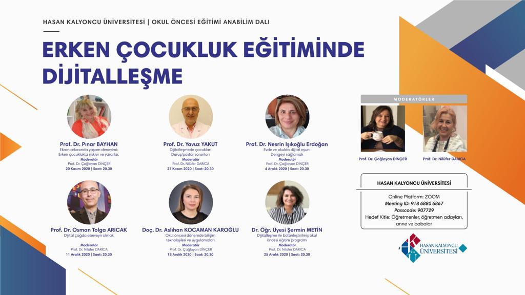 Erken Çocukluk Eğitiminde Dijitalleşme Tamamlanan Etkinlikler Yazar admin Tarih & Saat: Kasım 27 - Aralık 25, 2020 Yer: Zoom Meeting ID: 918 6880 6887 Password: 907729